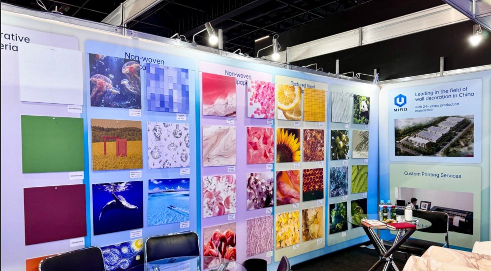 During the exhibition, MIRO’s booth drew strong interest from local printing specialists and wallpaper manufacturers. Visitors expressed great enthusiasm for MIRO’s sustainable printing substrates and premium latex-painted wallcoverings.