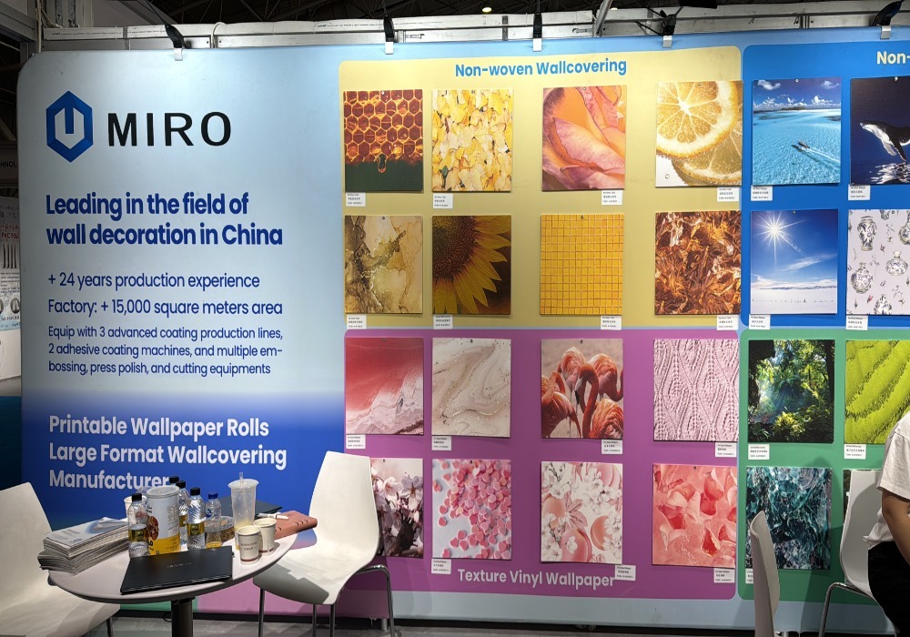 From May 20 to 22, 2025, MIRO participated in the Saudi Signage & Labelling Expo held in Riyadh. As one of the leading suppliers of eco-friendly wallcovering materials and printable wallpapers, MIRO showcased its latest latex-painted wallcoverings, water-based coatings, and sustainable wallpaper substrates.
